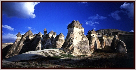 eroded the stone into peaks, cones and obelisks called fairy chimneys.